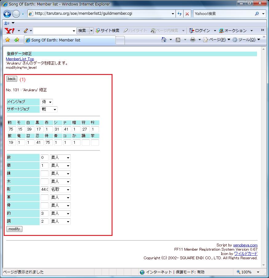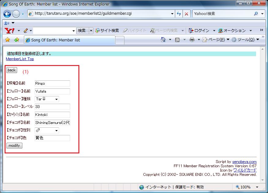 | (1) | modify | 変更する | 変更してメンバーリストに戻る | Modify | Modify and then back to Memberlist |