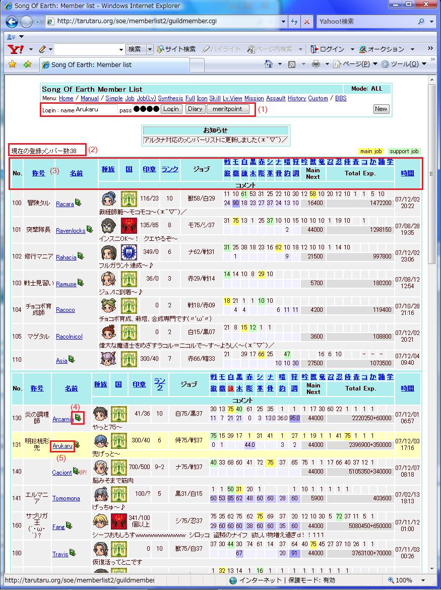 | (3) | Total Exp. | 合計経験値 | すべてのジョブの経験値の合計 | Total Exp. | Total Experience point of Character |