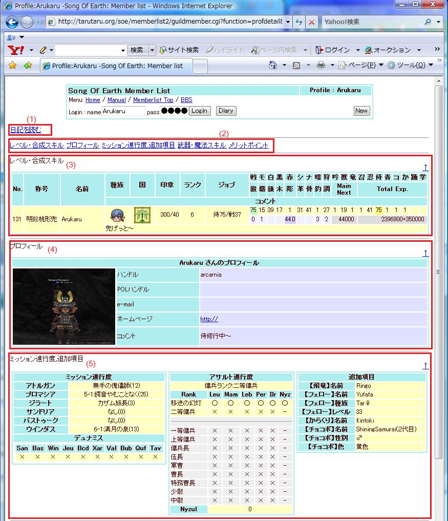 | (5) | 傭兵ランク | 傭兵ランク | 現在の傭兵ランク | Mercenary Rank | Current Mercenary Rank |