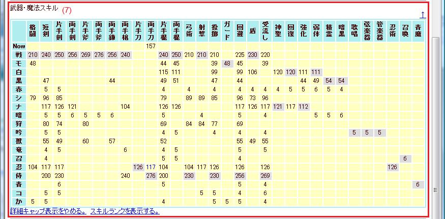 | (2) | 武器・魔法スキル | 武器・魔法スキル | 武器と魔法のスキルを表示する | Level of Combat skill and Magic skill | Move to Level of Combat skill and Magic skill |