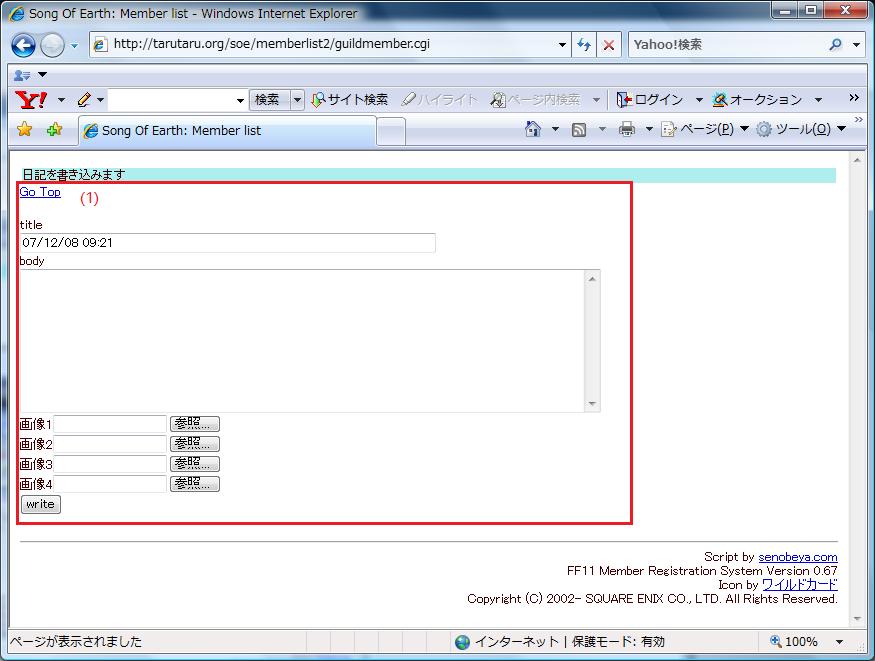 | (1) | 画像を追加 | 画像を追加 | 日記に追加する画像のファイル名 | Add image | file name of attached image |
