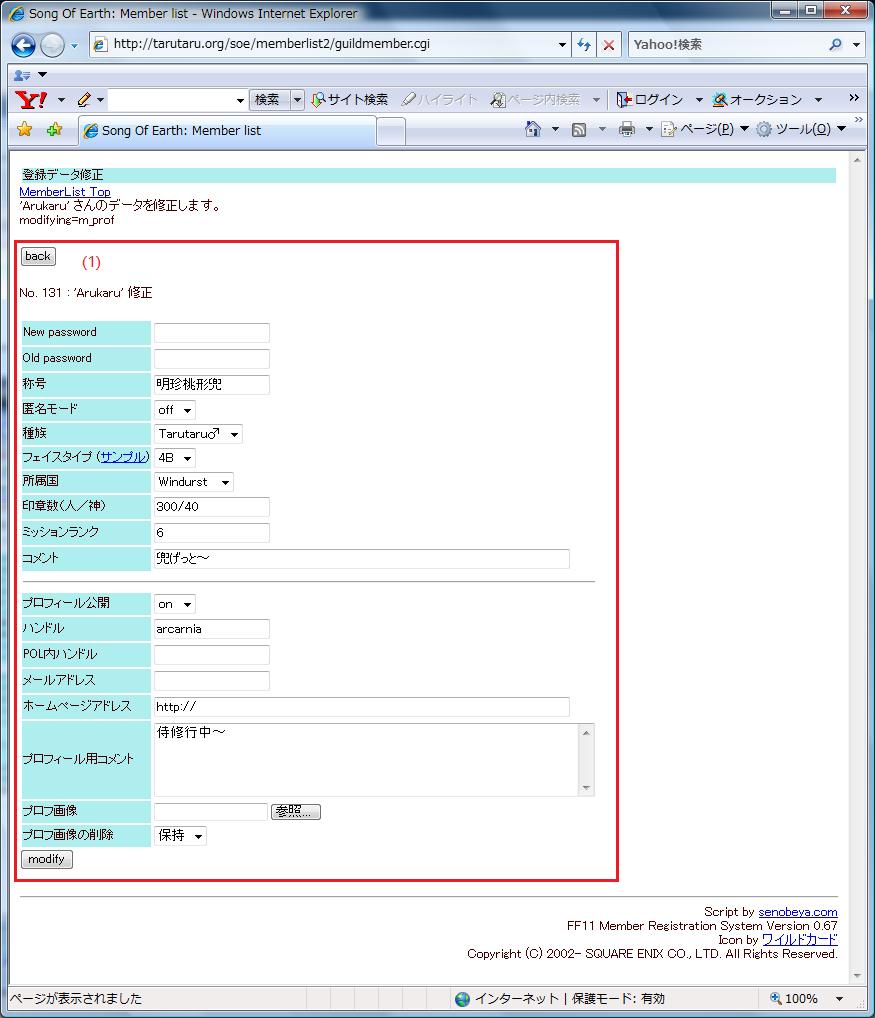| (1) | modify | 変更する | 変更してメンバーリストに戻る | Modify | Modify and then back to Memberlist |