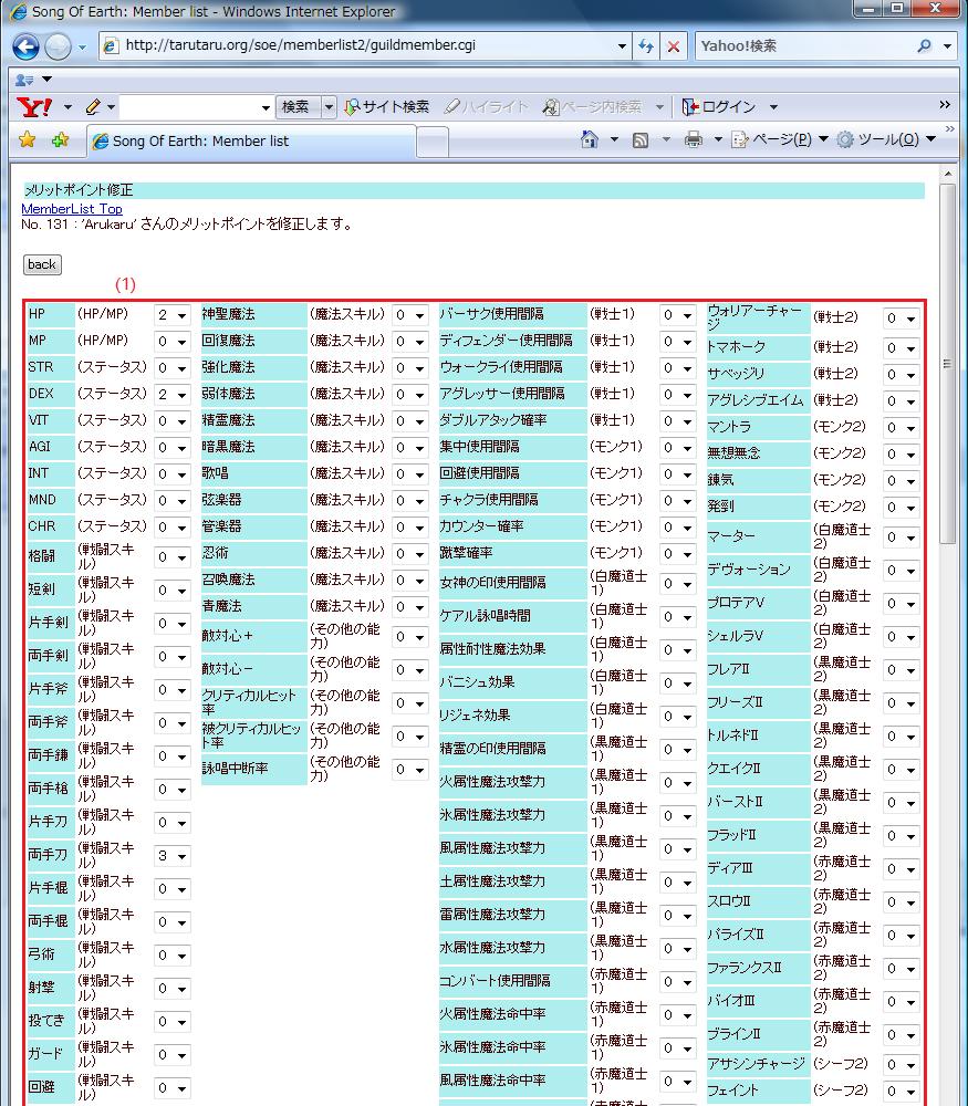 | (1) | meritpoint | メリットポイント | メリットポイントを保存してメンバーリストに戻る | Meritpoint | Save meritpoint and then back to Memberlist |