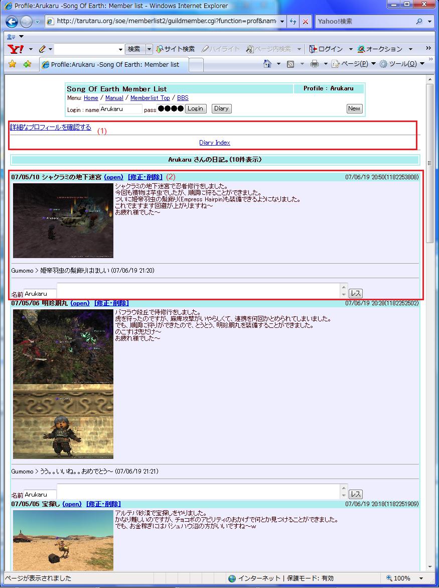| (1) | 日記を読む | 日記を読む | 日記ページへ移動する。 | Read Diary | Move to Diary page |